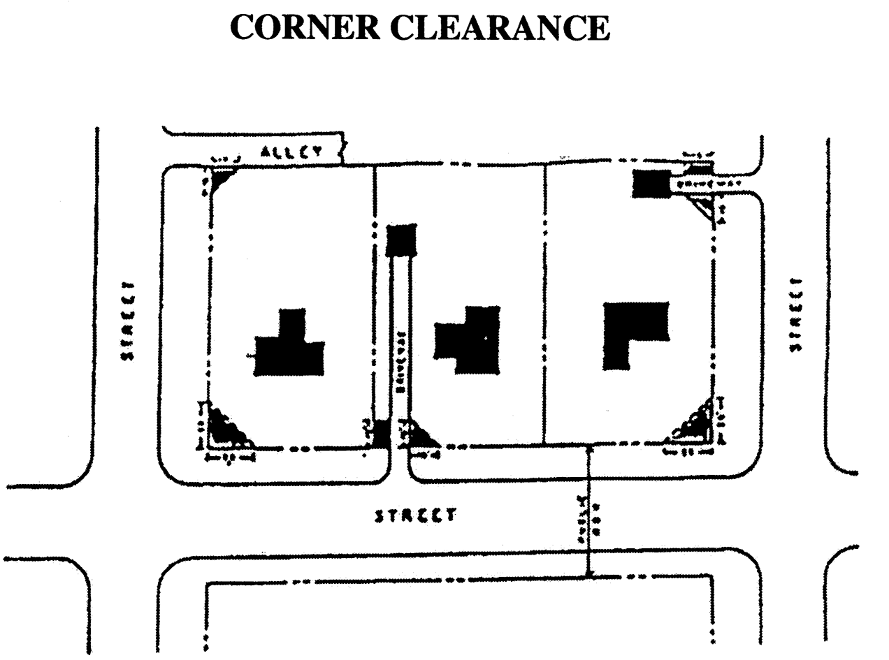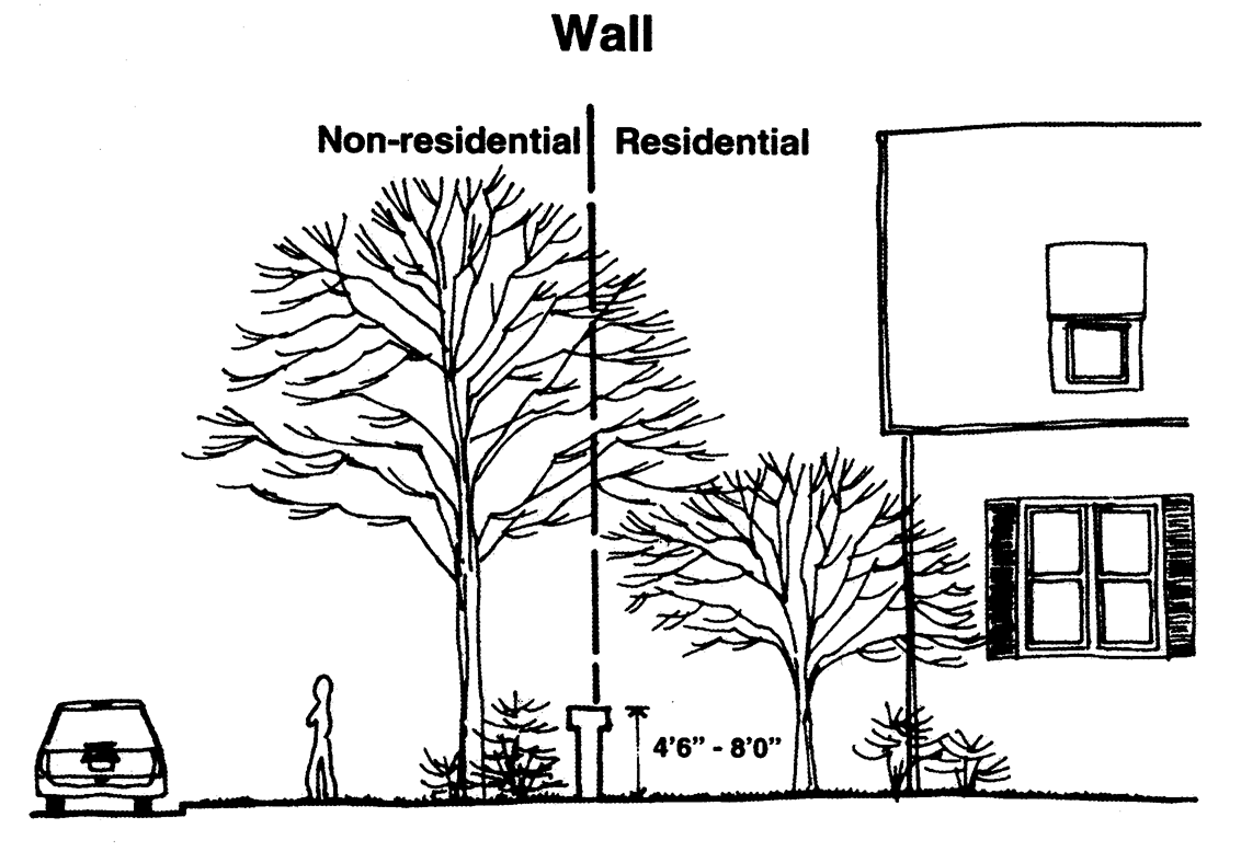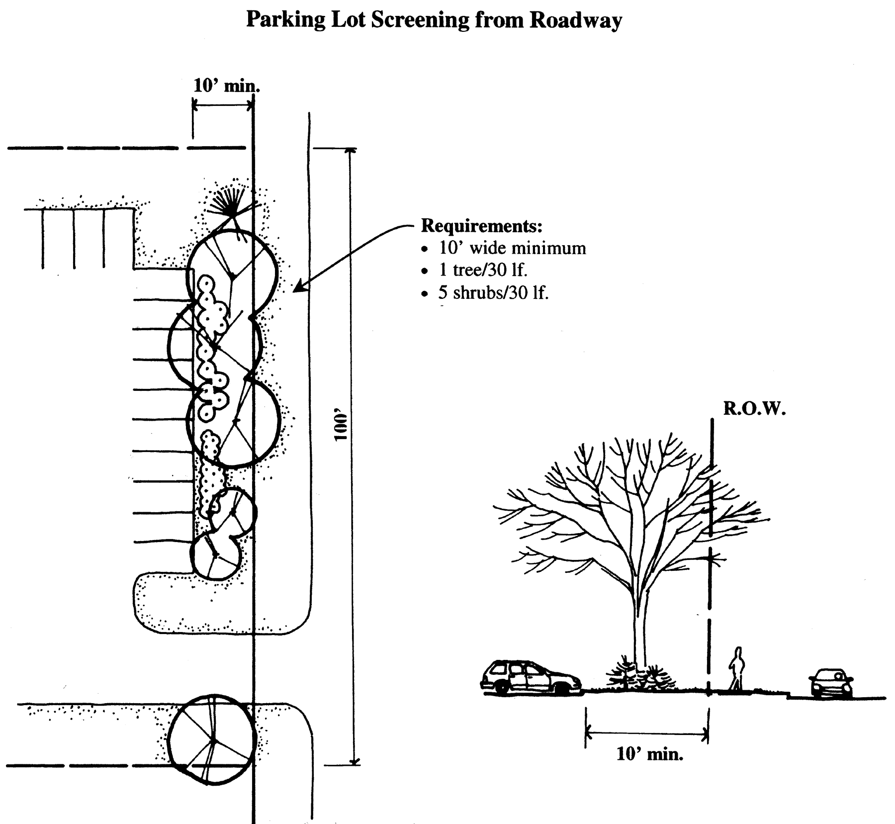 Parking lots which are visible from a public right-of-way (excluding a public alley) shall have the following landscaping between the parking lot and the right-of-way: