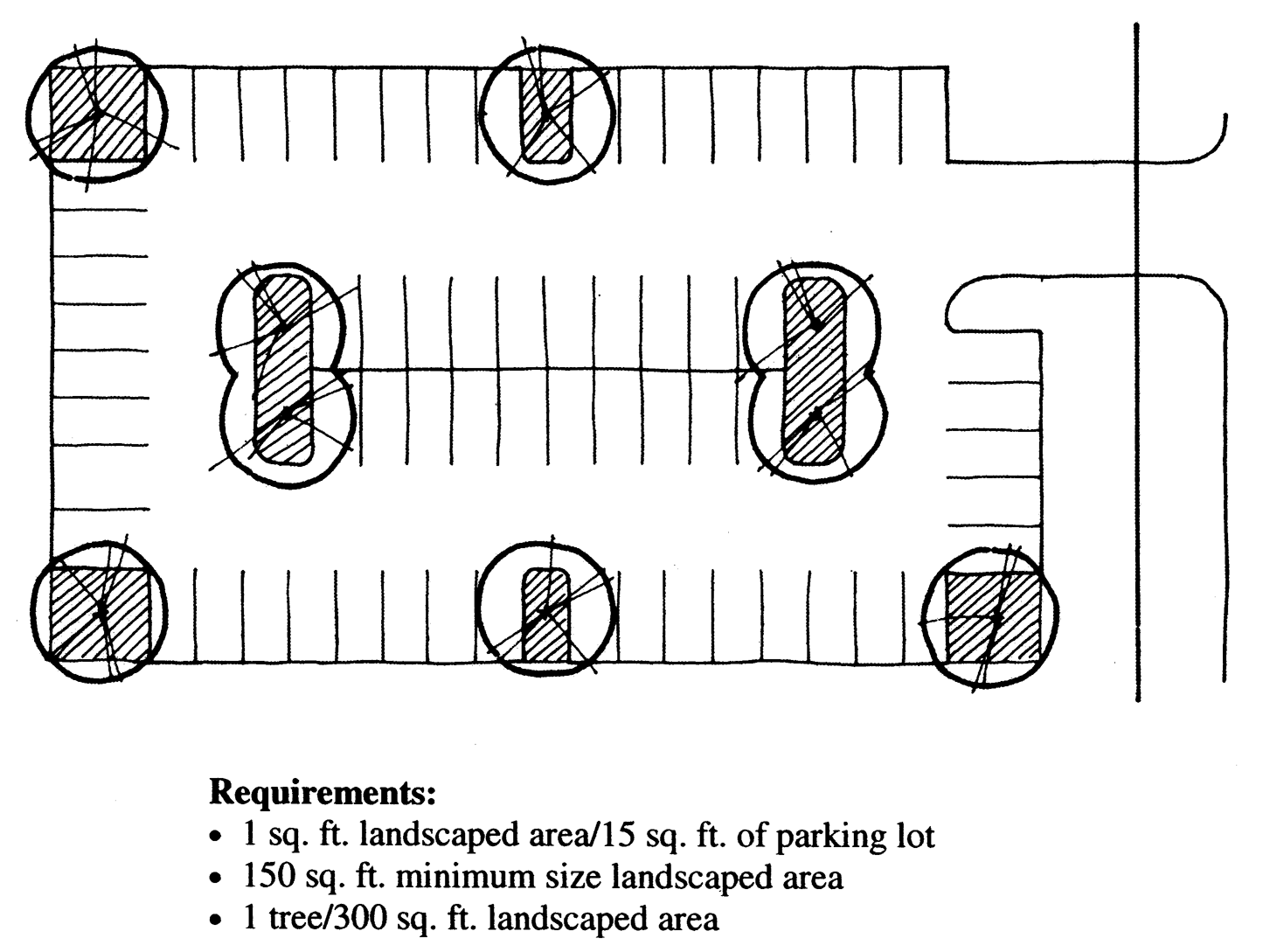 Parking lots of greater than 5,000 square feet shall meet the following landscaping requirements for the interior of the parking lot: