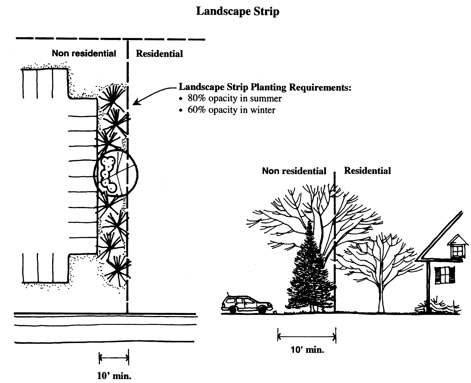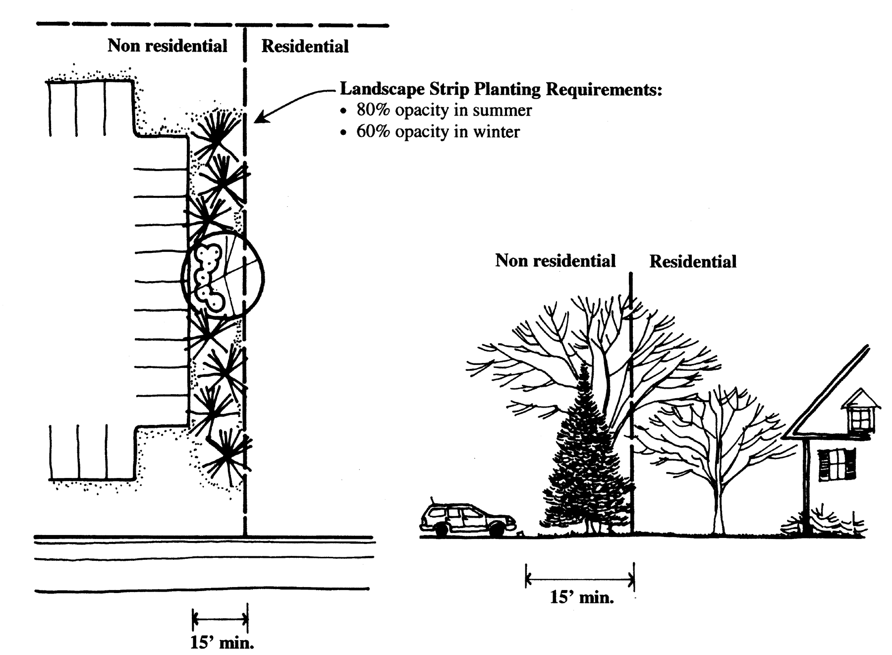 A parking lot of an office, commercial or industrial use adjacent to a public park facility or land principally used or zoned for residential purposes shall have a landscape strip at least 15 feet wide between it and all areas of such park or residential land, as required in section 78-206.