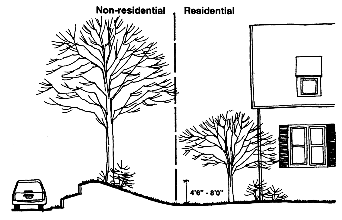 Small deciduous trees shall not be less than 1½ inches in caliper. When planted informally, they shall be spaced not more than 15 feet on centers.