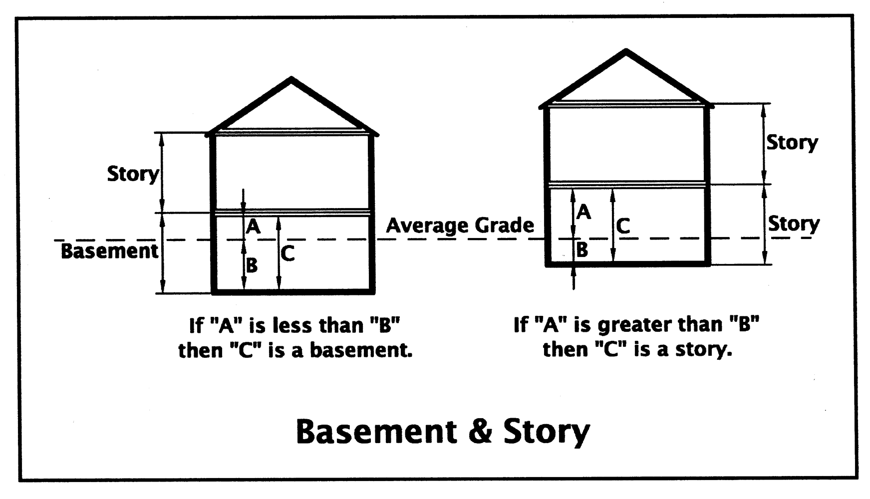 Story means that part of a building, except a mezzanine as defined herein, included between the surface of one floor and the surface of the next floor, or if there is no floor above, then the ceiling next above. A basement shall not be counted as a story. (See illustration for "story" following the definition for "basement" in this Section.)
