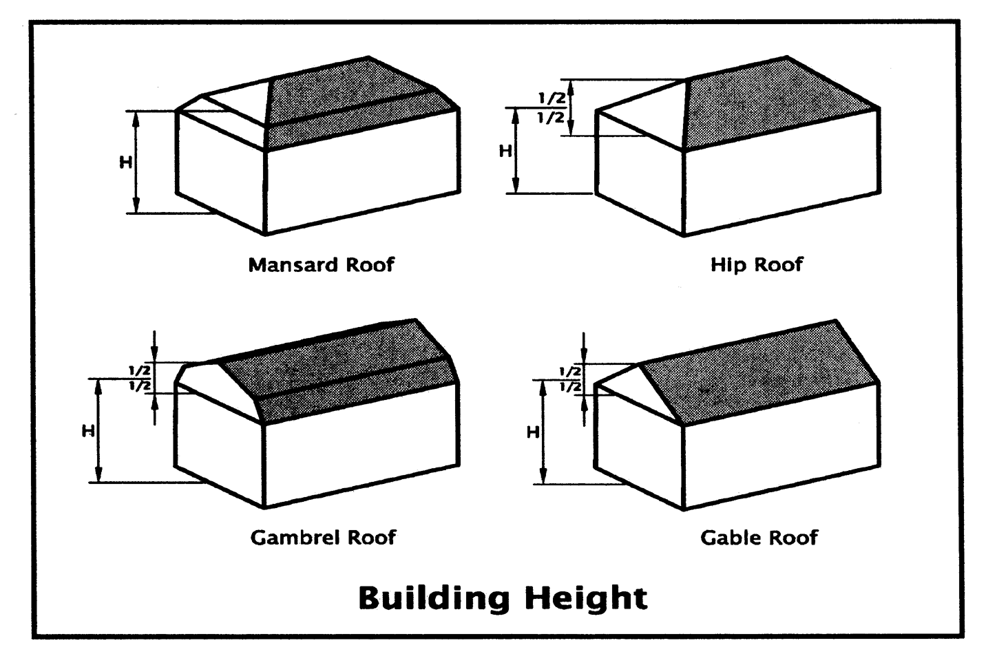 of mansard roofs; and to the average height between eaves and ridge for gable, hip