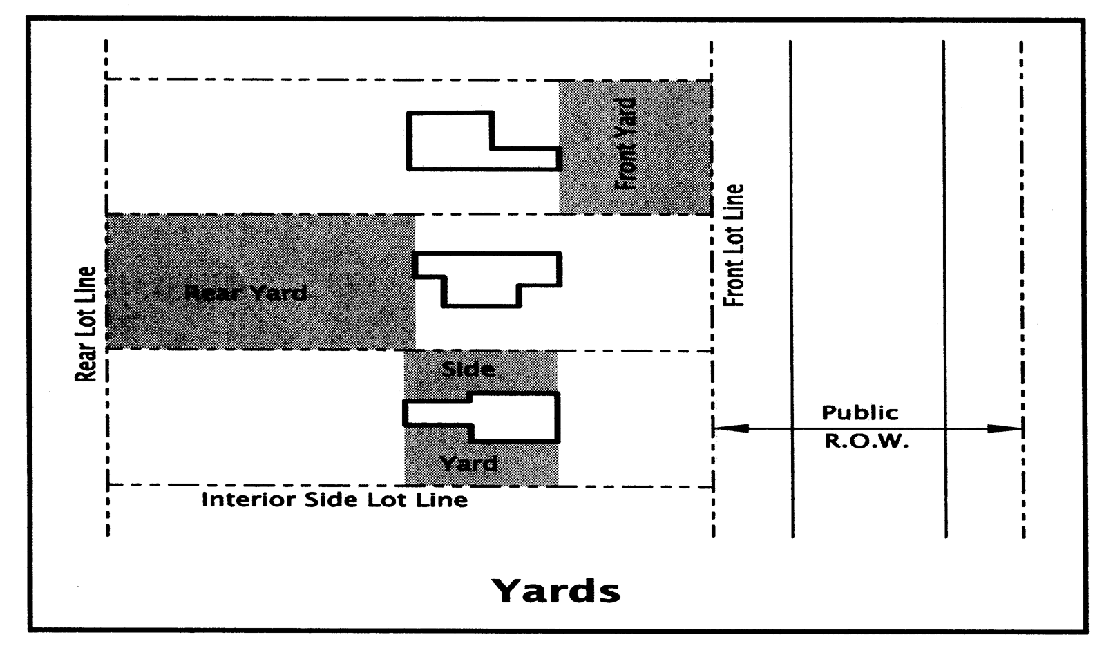 Side yard means an open space between a main building and the side lot line, extending from the front yard to the rear yard, the width of which is the horizontal distance from the nearest point on the side lot line to the nearest point of the main building.