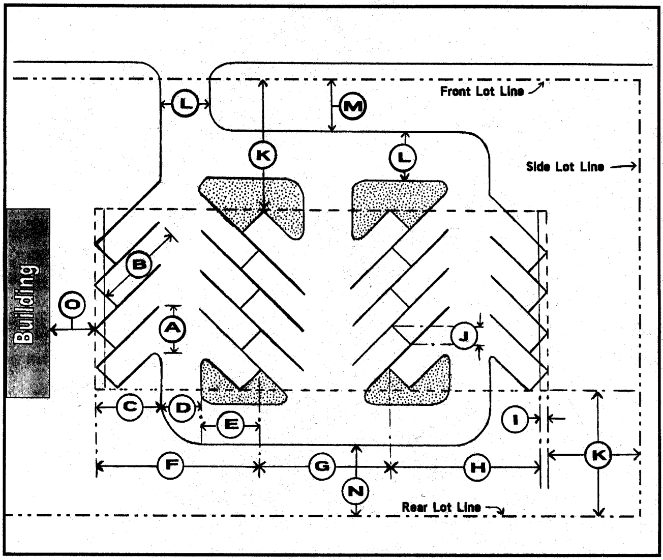 Front, side and rear setback requirements for off-street parking areas shall be consistent with the applicable provisions of Section 21135.07, Subd. 5.e.
