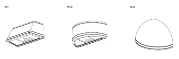 Figure F: This figure illustrates examples of fixtures that are NOT full cutoff fixtures. Note: Even though the lamps in these fixtures are shielded when viewed from the side or above, reflective surfaces within the fixtures or lens covers are directly visible from the side.