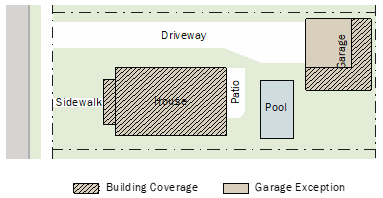 A residential garage up to four hundred fifty (450) square feet associated with a single-family house, attached house, or row house is not included the calculation of lot coverage.
