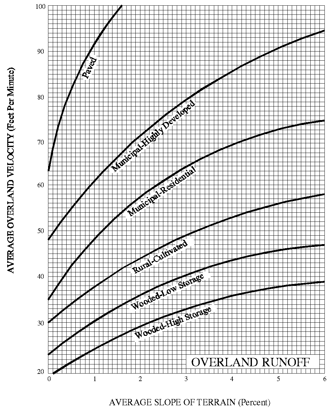 Figure A3 Overland Flow Velocities for Various Land Use Types