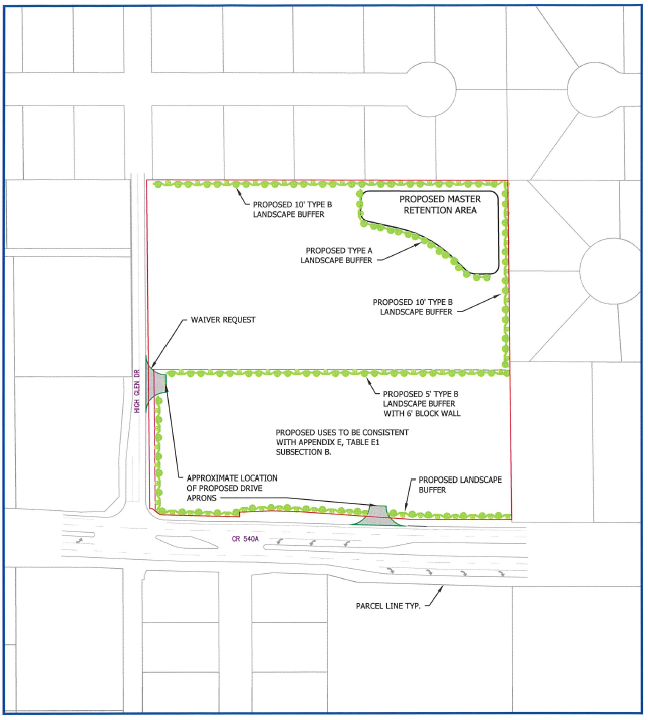 The provisions and requirements of this Subsection apply to the parcels located east of Lake Wales at the intersection of State Road 60, Boy Scout Rd and Walk-in-Water Road, as shown in the ACP. It is intended to apply to those parcels within the existing RCC boundary and serve as a guide for future expansions and access management.