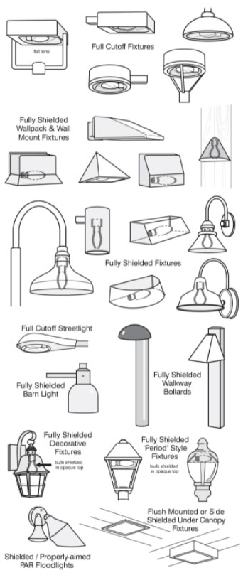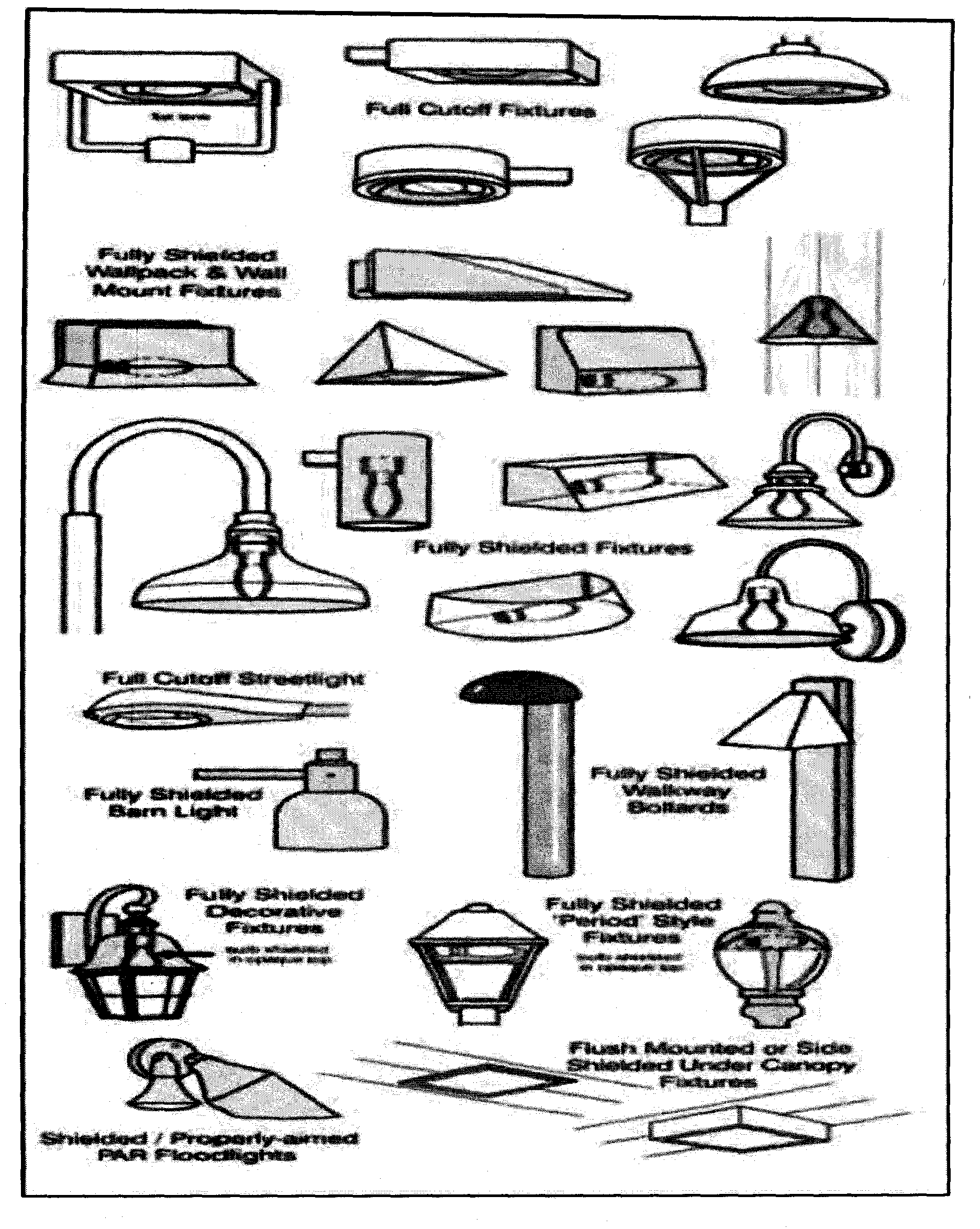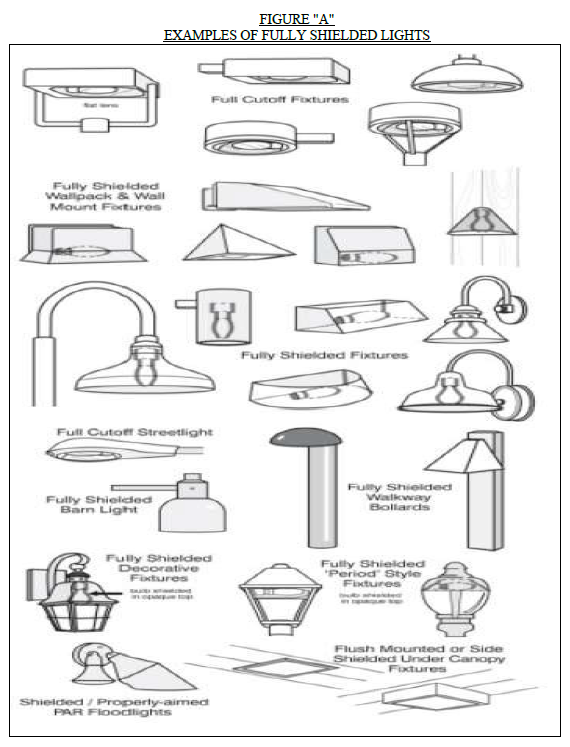 All outdoor lighting fixtures shall be of the fully shielded type. Examples of the fully shielded lights are set forth in Figure "A" below.