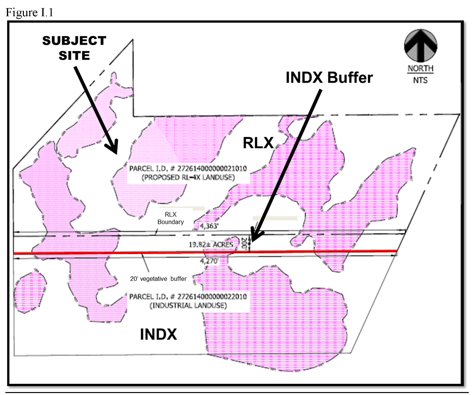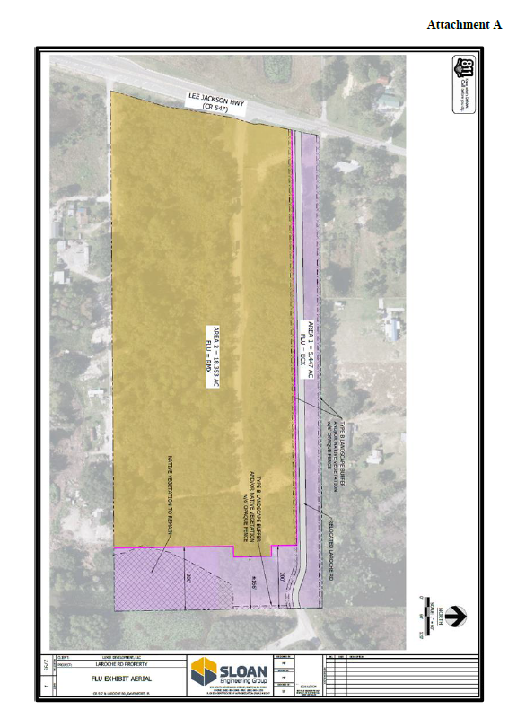 At the time of Level 2 review, the portion of the subject property as depicted in Attachment A designated with the Future Land Use of Employment Center (ECX) will not be allowed to develop with Employment Center uses. The only development allowed will be stormwater ponds, utilities, and the relocated LaRoche Road.
