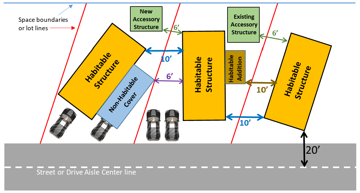 All new structures shall be at a minimum of 25 feet from the property boundaries.