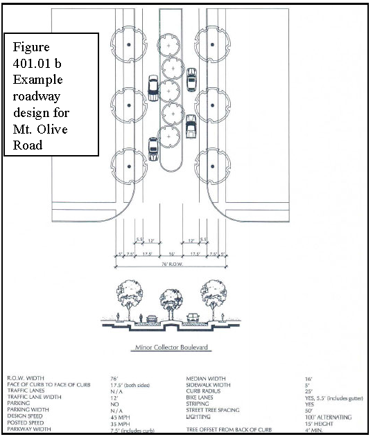 Mt. Olive Road Extension, the north/south road on the east side of the Polk Parkway, is required per the Polk Commerce Centre Development of Regional Impact (DRI) Development Order. The figure below is the design of the roadway anticipated by the City of Lakeland to be constructed within the Williams DRI. The design of the Mt. Olive Road Extension shall be based on input from the cities of Lakeland, Polk City, Auburndale, and Lake Alfred and shall meet the requirements of this Section.