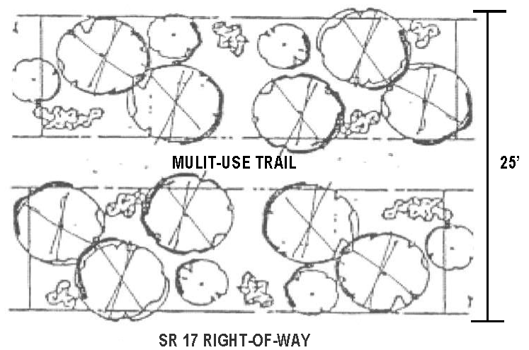 At a minimum, the Multi-Use Trail shall be paved using either concrete or asphalt pursuant to best practices and FDOT standards, 10-12 feet in width, and located within the required 25 foot roadway landscape/buffer (see example in Figure F).