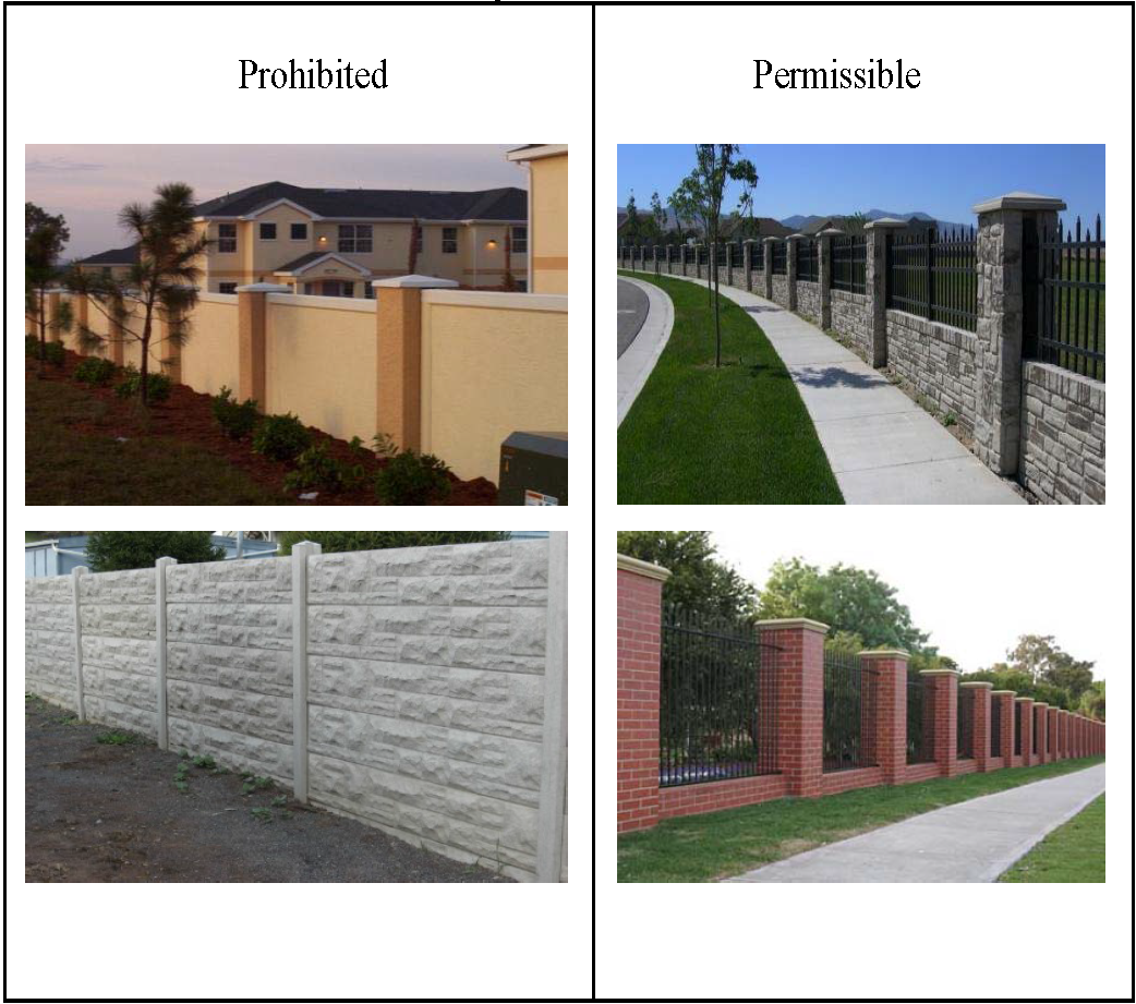 All fences within 50 feet of the required SR 17 roadway landscape/buffer shall be limited to six feet in height measured from the average adjacent grade. Other fences within the Overlay shall comply with the following standards: