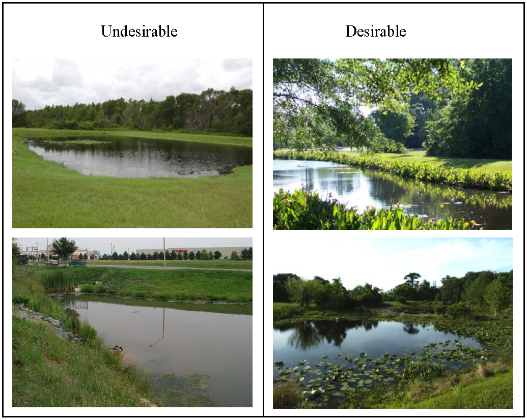 All stormwater retention facilities and drainage areas within the SR 17 Resource Protection Overlay district shall be naturally shaped (curvilinear, not basic geometric shapes) and landscaped with species native to the Lake Wales Ridge along the edge of bank and within the pond area (see Figure E). The number and type of plantings along the edge of bank shall be consistent with Type A Buffer requirements; however, plantings shall be grouped and dispersed to present a natural distribution rather than installed in a linear distribution.