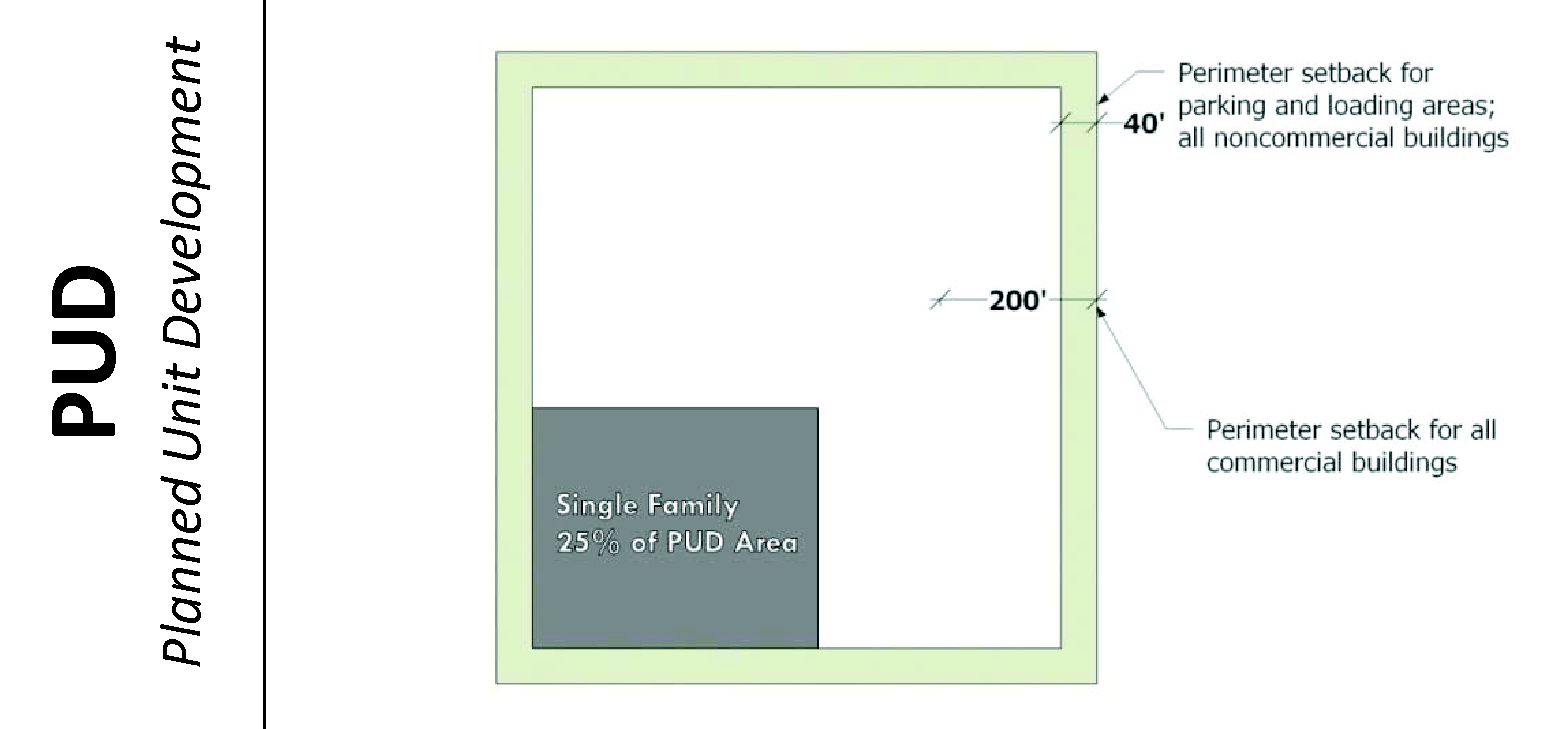 The official zoning map shows the boundaries of each zoning district.