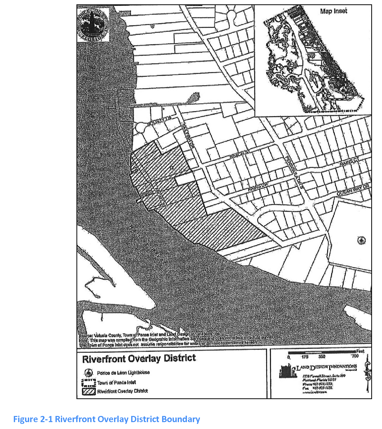 Purpose and intent. The riverfront overlay district (ROD) is intended to provide supplementary regulations to all of the B-2 and MF-2 zoning districts lying east of the Halifax River and west of Sailfish Drive to assure that development within this area promotes the open, water-oriented character of the riverfront, protects environmental resources and ensures a high quality of design. (See Figure 2-1, riverfront overlay district boundary, that graphically depicts the extent of the ROD.) Additionally, the ROD is consistent with the town's comprehensive plan goals, objectives and policies that have been established as a result of the town's visioning process regarding development and redevelopment of Ponce Inlet's riverfront. These goals, objectives and policies were established to not only create a pedestrian-oriented riverfront environment in a manner that contributes to making Ponce Inlet a better residential community, but also to ensure access to the riverfront for both pedestrians and bicyclists and preserve the historic setting and unique character of this area, including, but not limited to, the scenic roads of Beach Street and Sailfish Drive designated by town Resolutions 1999-11 and 2000-09.