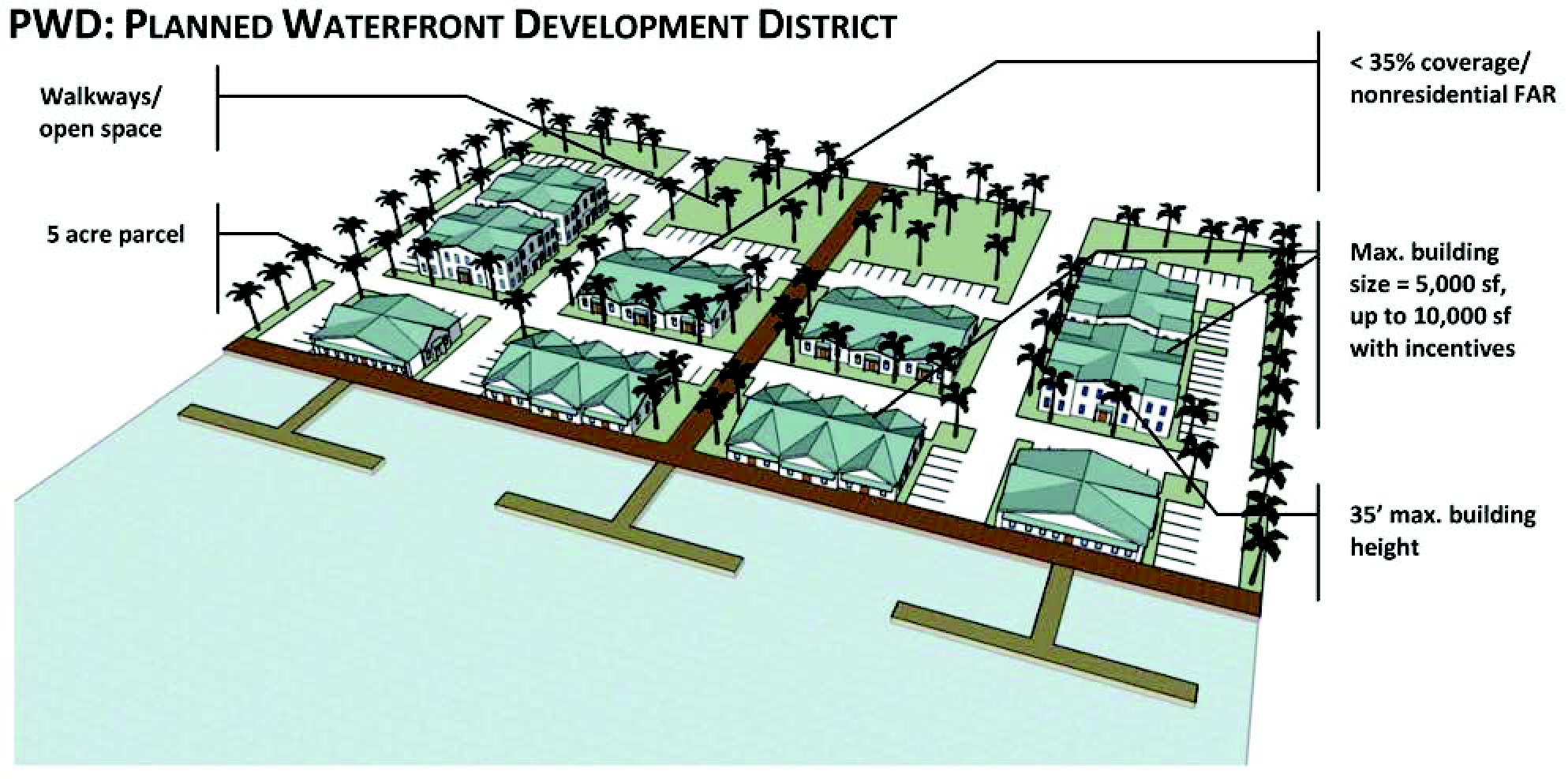Purpose and intent. The purpose of this riverfront commercial zoning district is to create an area that is characterized by small-scale retail outlets and to retain and enhance those elements of the water-oriented commercial activity that can be integrated into a small town fishing village concept. The intent is to promote development that will be of a scale that promotes social interaction. However, projects of this type will have to be especially sensitive to the environment in which they are proposed to be built, so that the desired character and charm have an opportunity to be developed.