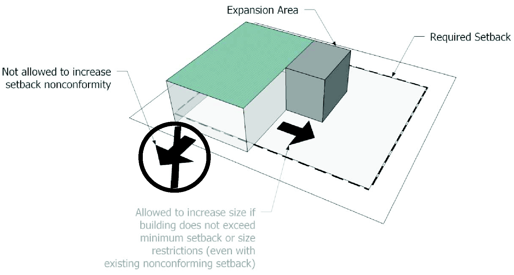 Nonconforming lots, uses, and structures may continue in their present condition, but shall not be enlarged, expanded, or used for adding other structures or uses prohibited elsewhere in the same zoning district.