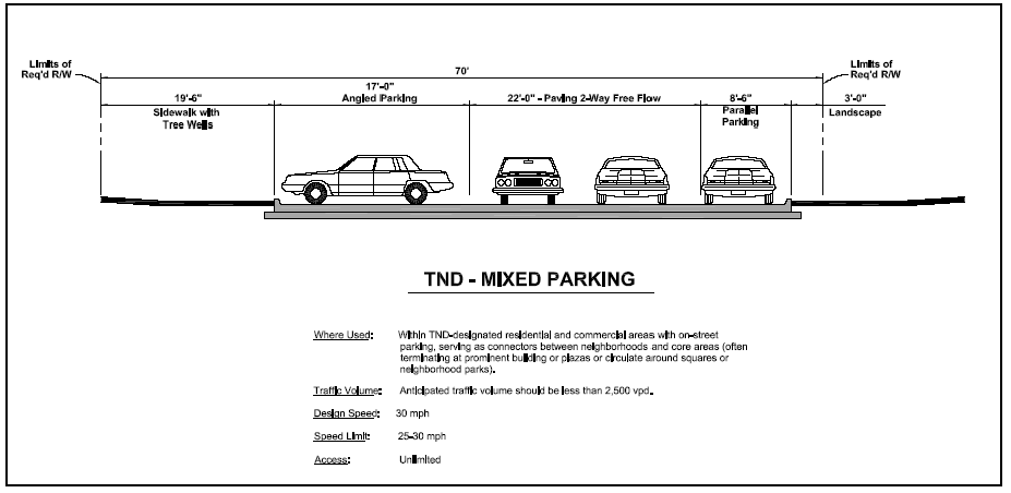 Coordinates transportation systems with a hierarchy of appropriately designed improvements for pedestrians, bicycles, and vehicles, which incorporates a system of relatively narrow, interconnected streets, roads, drives, and other thoroughfare types, and provides for the connections of those thoroughfare types to existing and future developments;
