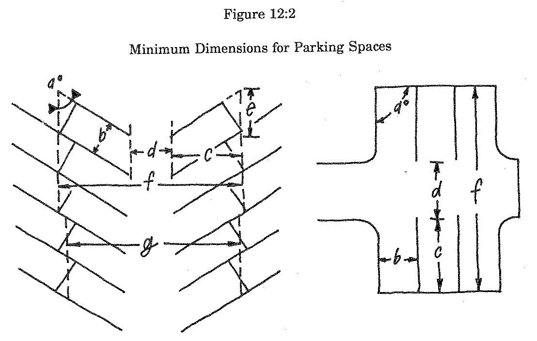 Dimensions. The following table and illustration prescribe the required minimum dimensions of all parking spaces.