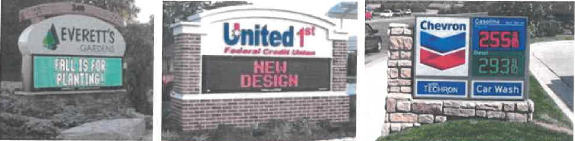 Protect property values by ensuring that sign types, as well as the number of signs, are in harmony with buildings, neighborhoods, and conforming signs in the area.