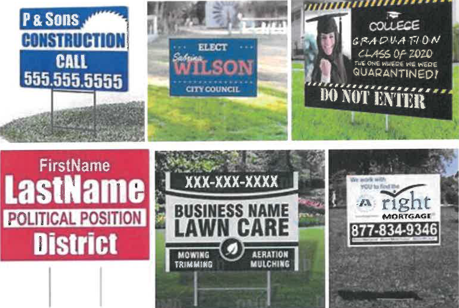 Figure 15:34 Examples of yard signs