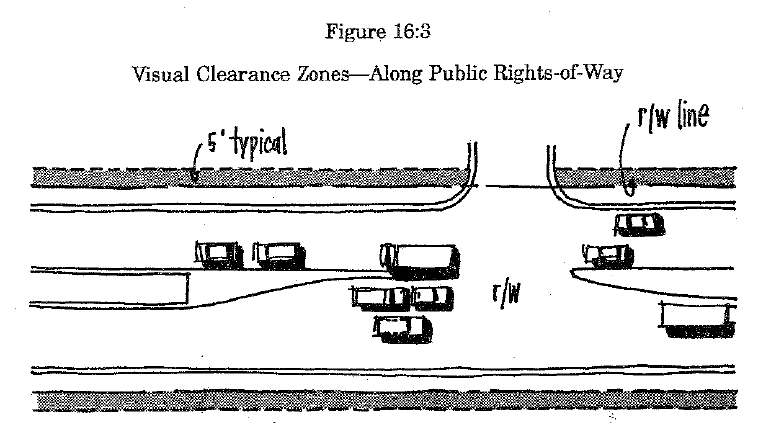 For individual single-family and two-family residential corner lots with a secondary front lot line abutting a local street, a six-foot-tall privacy fence may be placed up to the front plane of the house. For corner lots with a secondary front lot line abutting an arterial or collector road, the six-foot-tall fence may further encroach into the required front yard to within five feet of the secondary front lot line. Fence placement per this subsection shall also be allowed on legal nonconforming lots, provided visual clearance requirements of section 6 of this chapter can still be met. Please see Figure 16:A below.