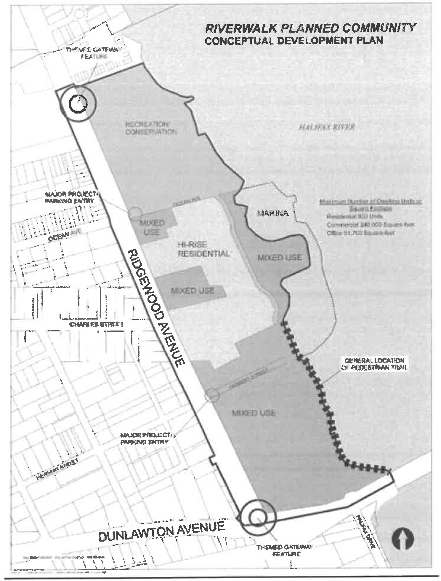 Development entitlements. Consistent with the future land use element of the city's comprehensive plan, the maximum development entitlements granted by development orders within the Planned Community—Port Orange Riverwalk (PC-R) shall not exceed 800 residential units, 240,000 square feet of commercial uses, and 51,700 square feet of office uses. Parking garages and recreation facilities within public spaces shall not count towards overall development entitlements. Buildings for other institutional, civic and quasi-public uses shall count as part of the overall non-residential development.