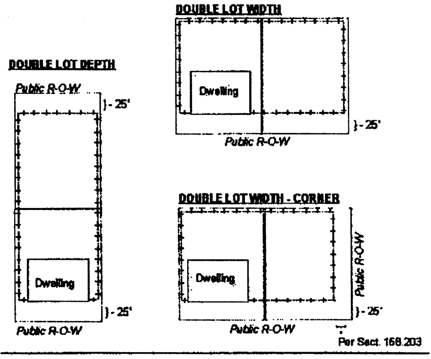 In applying these requirements, the front property line shall be that most consistent with frontages established by platting or development patterns containing the subject property.