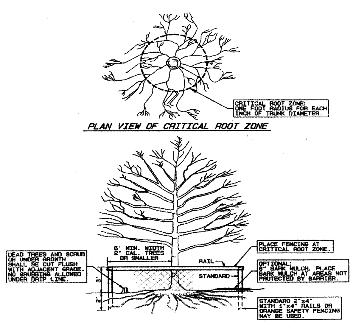 All tree protection devises must be installed prior to land disturbance, including the cutting of any trees.