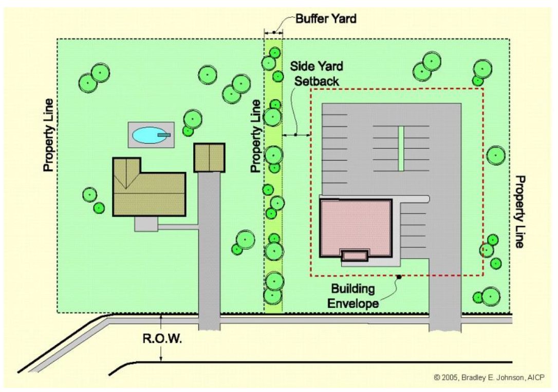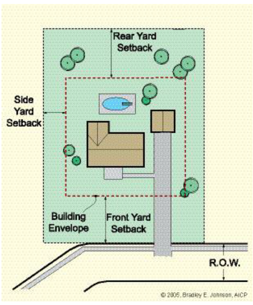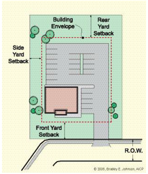 Building envelope. The maximum allowable construction/improvement area on a property. See diagrams below.