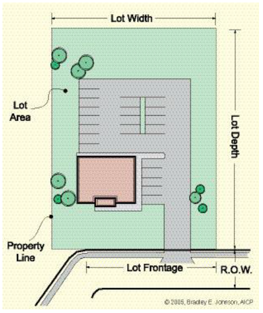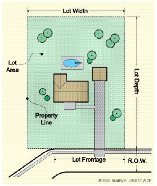 Street frontage. The distance along which a property line of a lot abuts the right-of-way of an adjacent street.