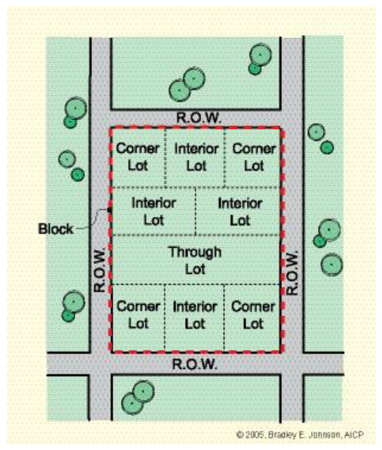 Vision clearance triangle (sight triangle). An unoccupied triangular space at the street corner of a corner lot. The triangle is formed by connecting the point where each right-of-way line intersects and two points located 25 feet along each right-of-way line.