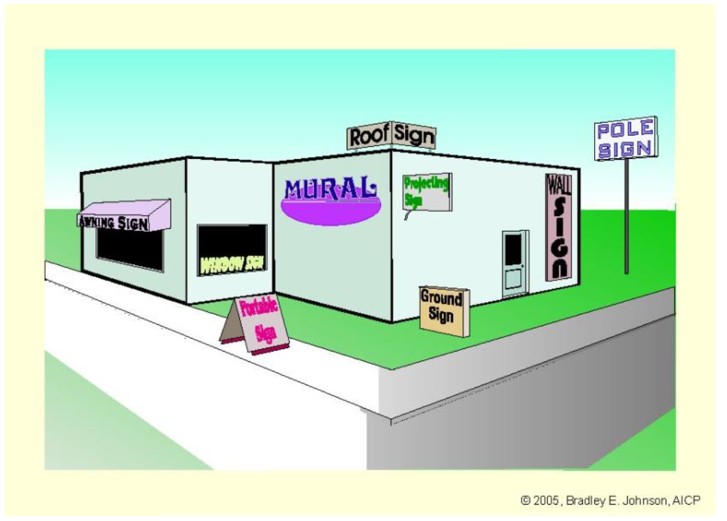 Sign, wall. A type of building sign painted on, incorporated in, or attached directly to a building wall, with the exposed face of the sign in place parallel to the building wall. (For the purposes of this zoning ordinance, any approved projecting signage by the board of zoning appeals shall be included in the building signage allowance.)
