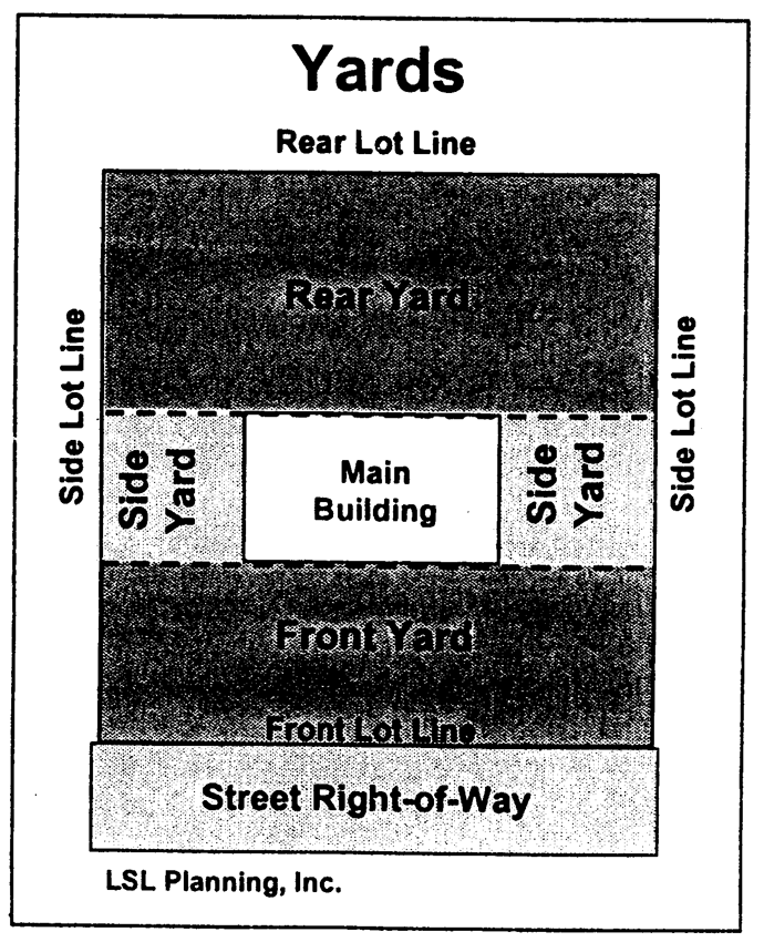 Yard: The open space on the same lot with a main building, unoccupied and unobstructed from the ground upward, except as otherwise provided in this article.