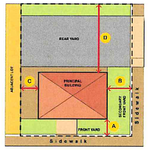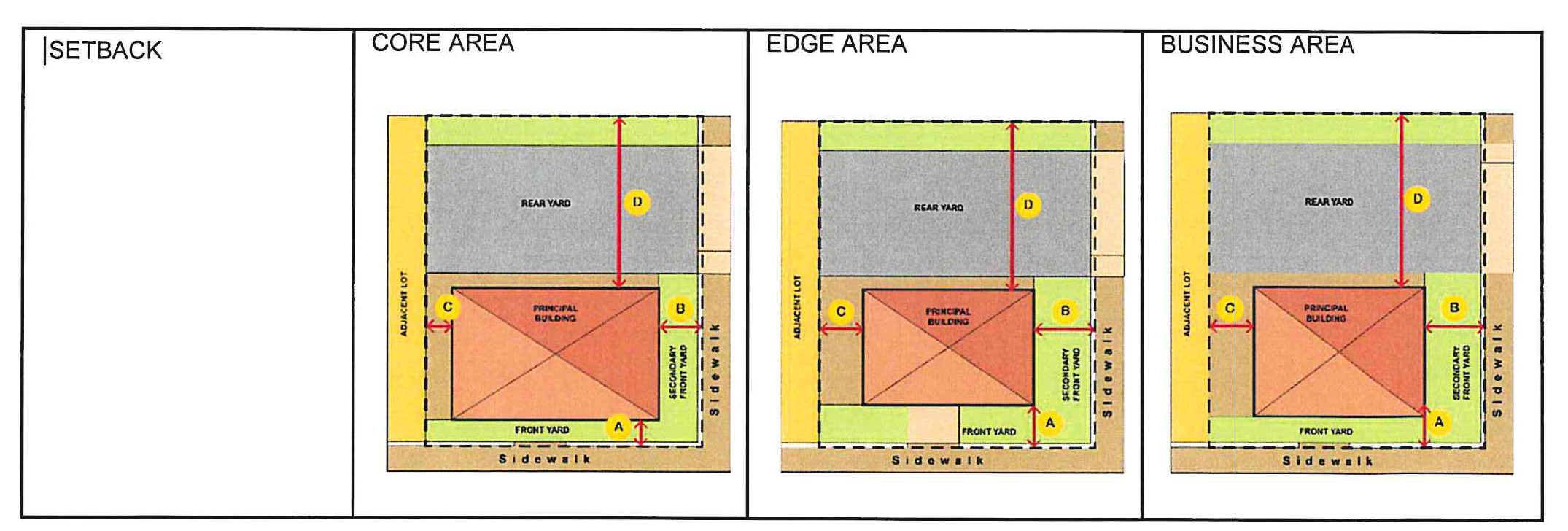 Setback Portage Road: All parking spaces shall comply with the maximum setback of the core, edge and business areas.