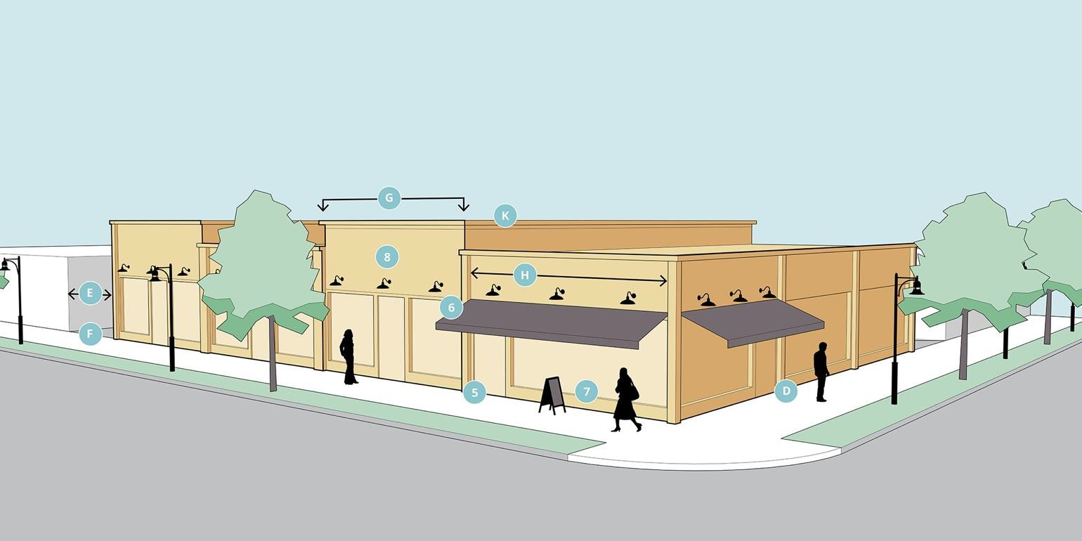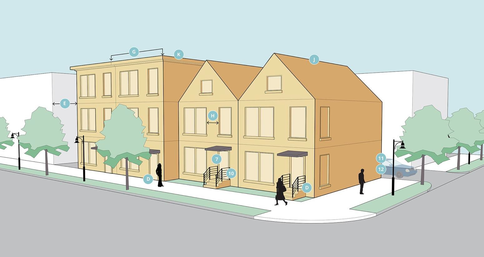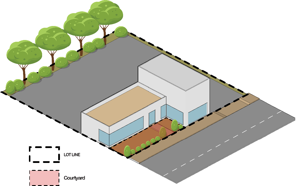 The following dimensional and design standards regulate the physical characteristics of development in the LC district. The standards are broken into sections addressing a specific development characteristic: blocks and streets, lot requirements, and building requirements.