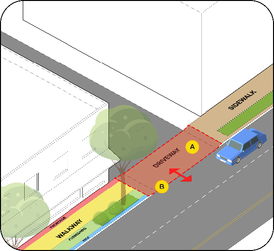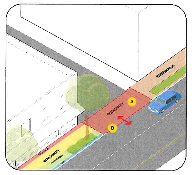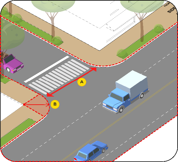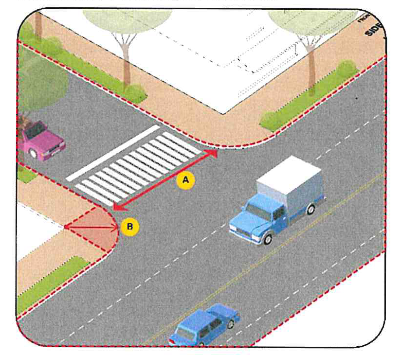 Setback from cross streets: All parking spaces shall be set back a minimum of five feet from any cross street.