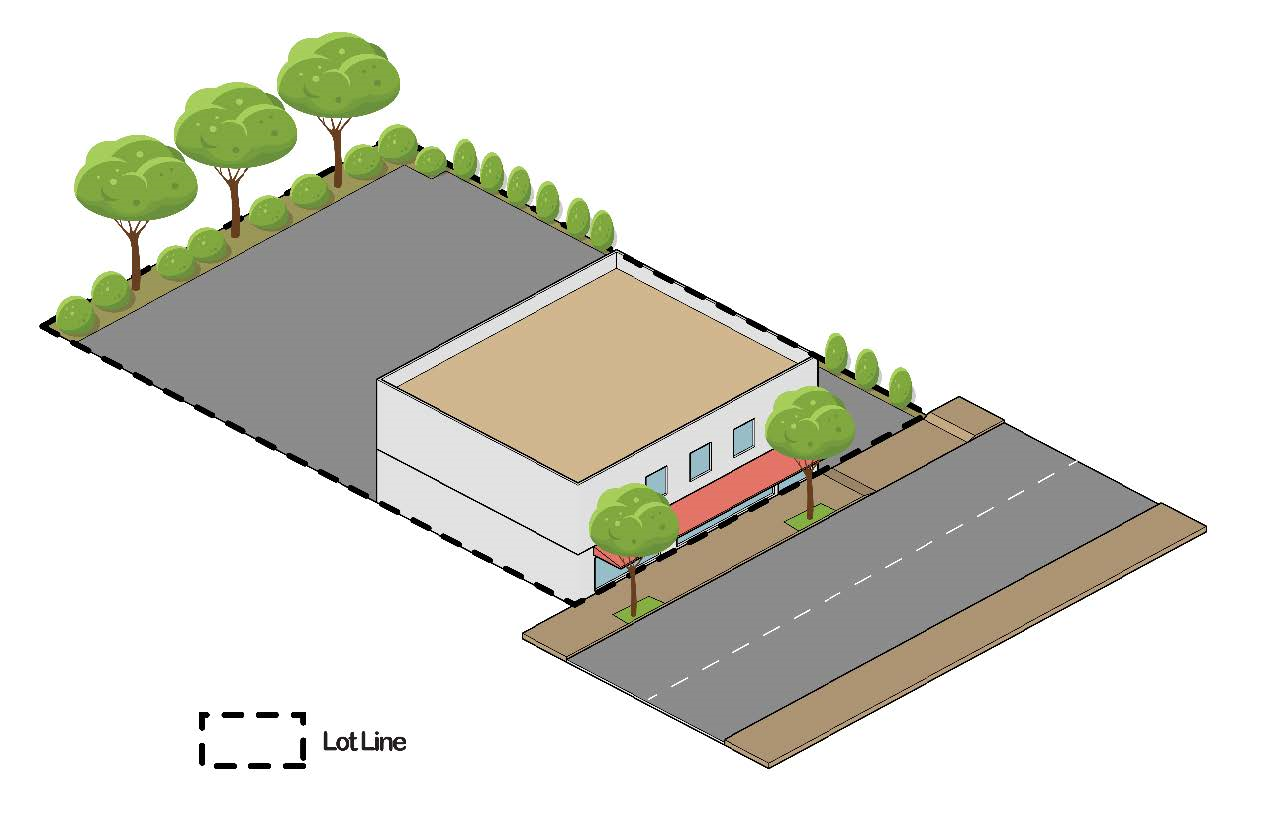 Setbacks. Buildings in the LC district shall comply with the following minimum and maximum setback requirements. When there is a minimum and a maximum requirement for a setback, the building must be located in the build-to area that is created by the minimum and maximum setback requirement.