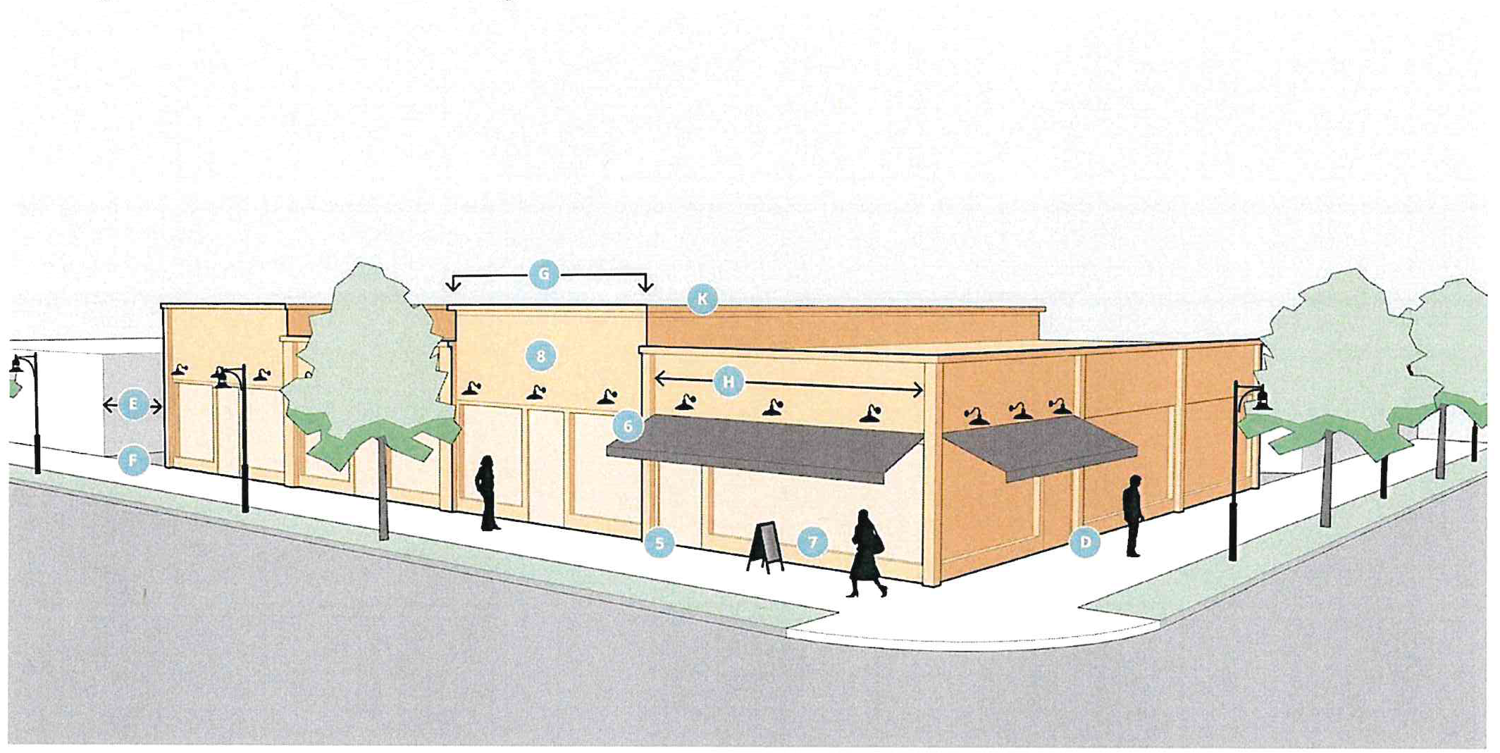 Primary building entrances open onto a street, sidewalk, or public space. Secondary entrances may be provided from a parking lot. Corner buildings should have at least one entrance addressing each street frontage.