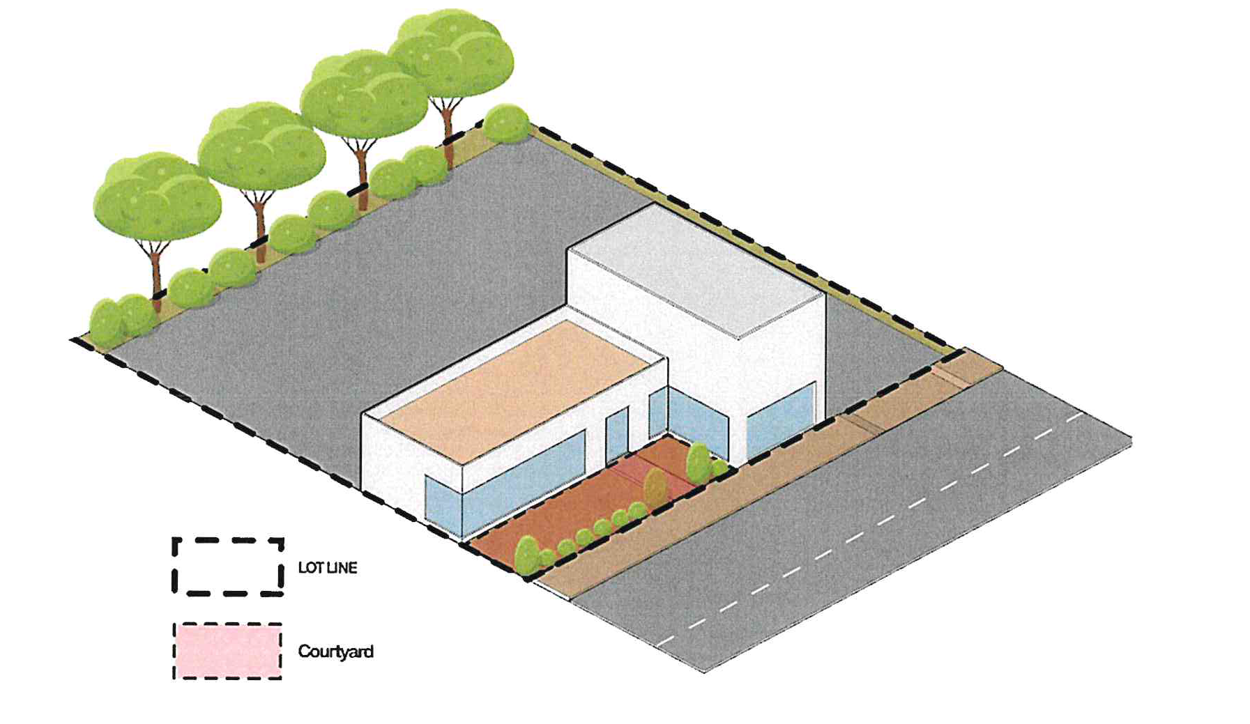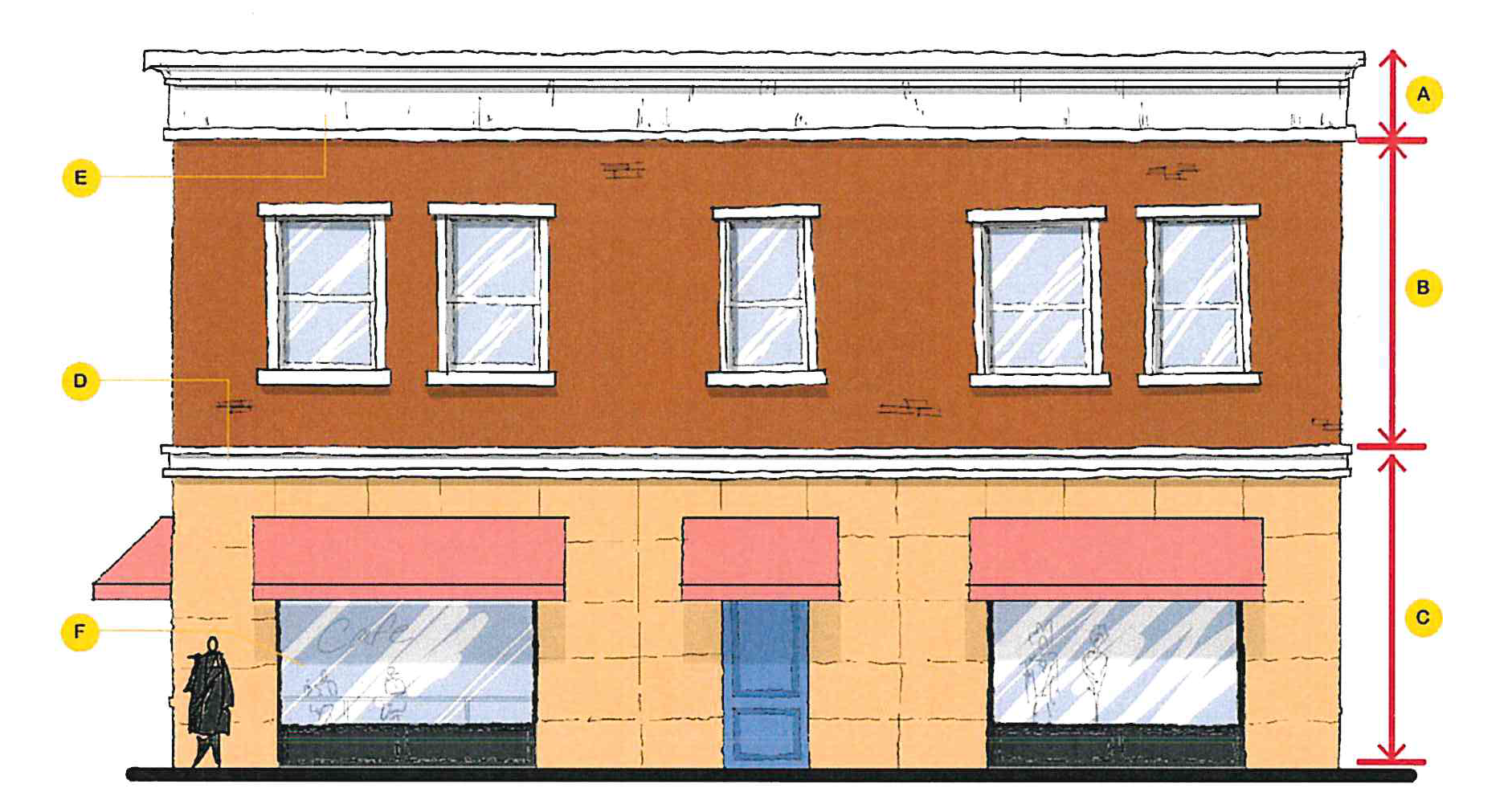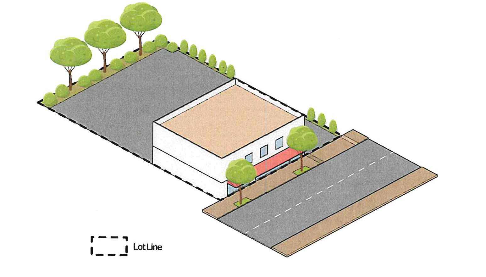 Required building frontage. In order to maintain a pedestrian scale environment, it is important that buildings maintain a minimum frontage within the front setback area. This prevents buildings from being spaced too far apart, which creates gaps in the street wall. Building frontage is defined as the width of the building in the build-to area divided by the lot width at the front property line. By way of example, a building that is 70 feet wide in the build-to area located on a lot that is 100 feet wide would have a building frontage of 70 percent (70/100 = 70%).