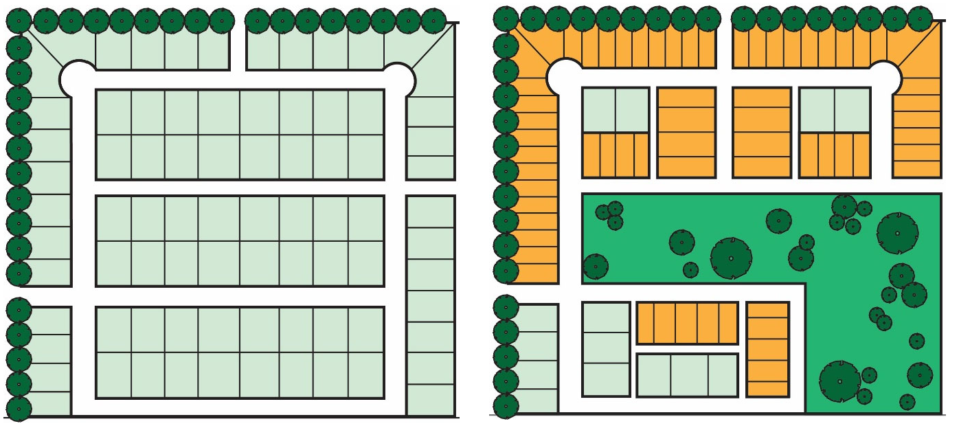 Example of Traditional Development (Left) Versus Cluster Development (Right)