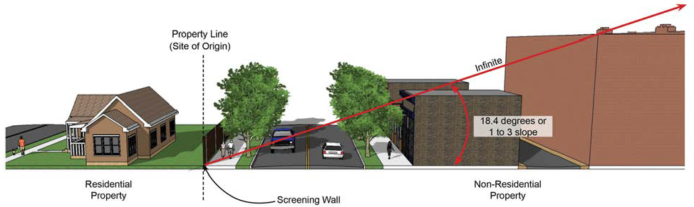 Lots abutting residential dwellings or residential zoning districts shall use low-level lighting, as defined by the Illuminating Engineering Society of North America (IESNA), to minimize light visibility on adjoining properties.