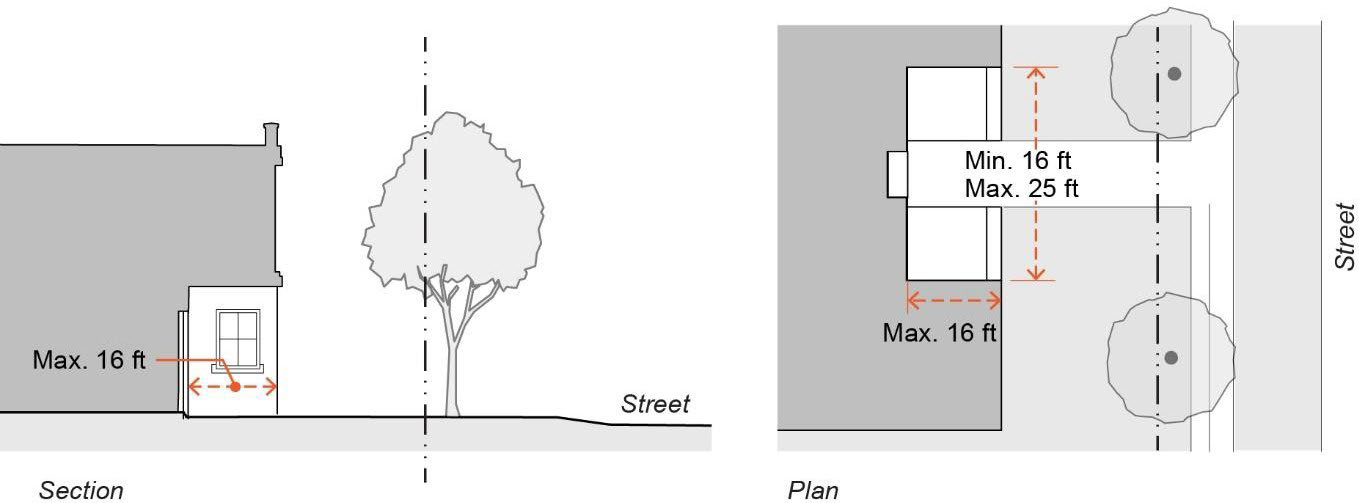Width of recessed entry: Minimum sixteen feet, maximum twenty-five feet.