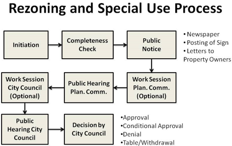 For rezoning requests, a public information meeting shall be held after application submittal, and prior to the City Council Public hearing. This requirement may be waived at the discretion of the community development director.
