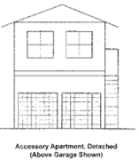 Accessory apartment, detached: A second dwelling unit that is added to an existing accessory structure (e.g., residential space above a detached garage), or as a new freestanding accessory building, for use as a complete, independent living facility for a single household, with provision within the accessory apartment for cooking, eating, sanitation and sleeping. Such a dwelling is considered an accessory use to the principal dwelling. Includes the term garage apartment.