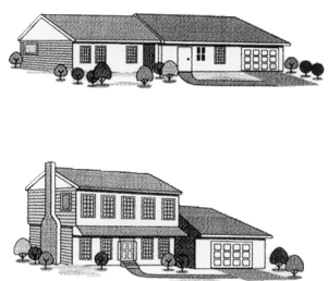 On a sloping lot, consider a step-down dwelling layout (different elevations of the home) as an alternative to extensive cut, fill, and grading operations to level the entire building site.