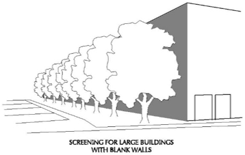 Walls facing the outside of the property should be constructed of decorative block. Wall accent materials are also encouraged.