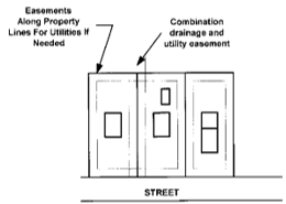 Air conditioning units installed at grade should be sited to the rear or side of the building rather than the front of the building. Mechanical systems located on a rooftop shall be screened from view from the front and side lot lines by a parapet wall or other approved architectural feature.
